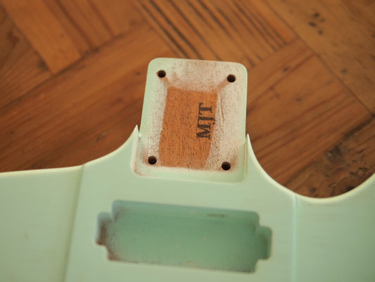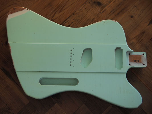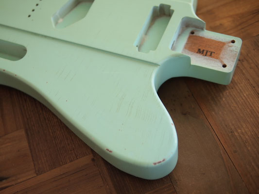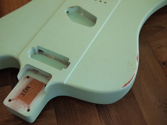 アメリカ・ミズーリのMJT社により、ビンテージのようにリアルなレリック塗装を施された、Made In USAのボディです。