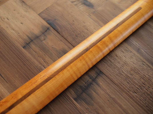 トラスロッドを背面から仕込むため、ネック裏にあけた穴を他の木(通常はウォルナット)で埋めた「スカンクストライプ」を持つのも大きな特徴です。